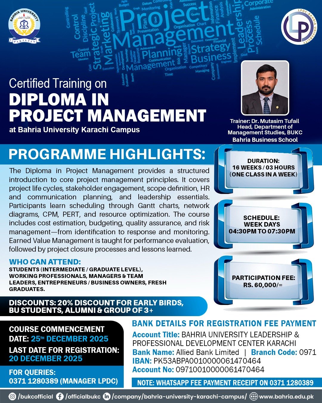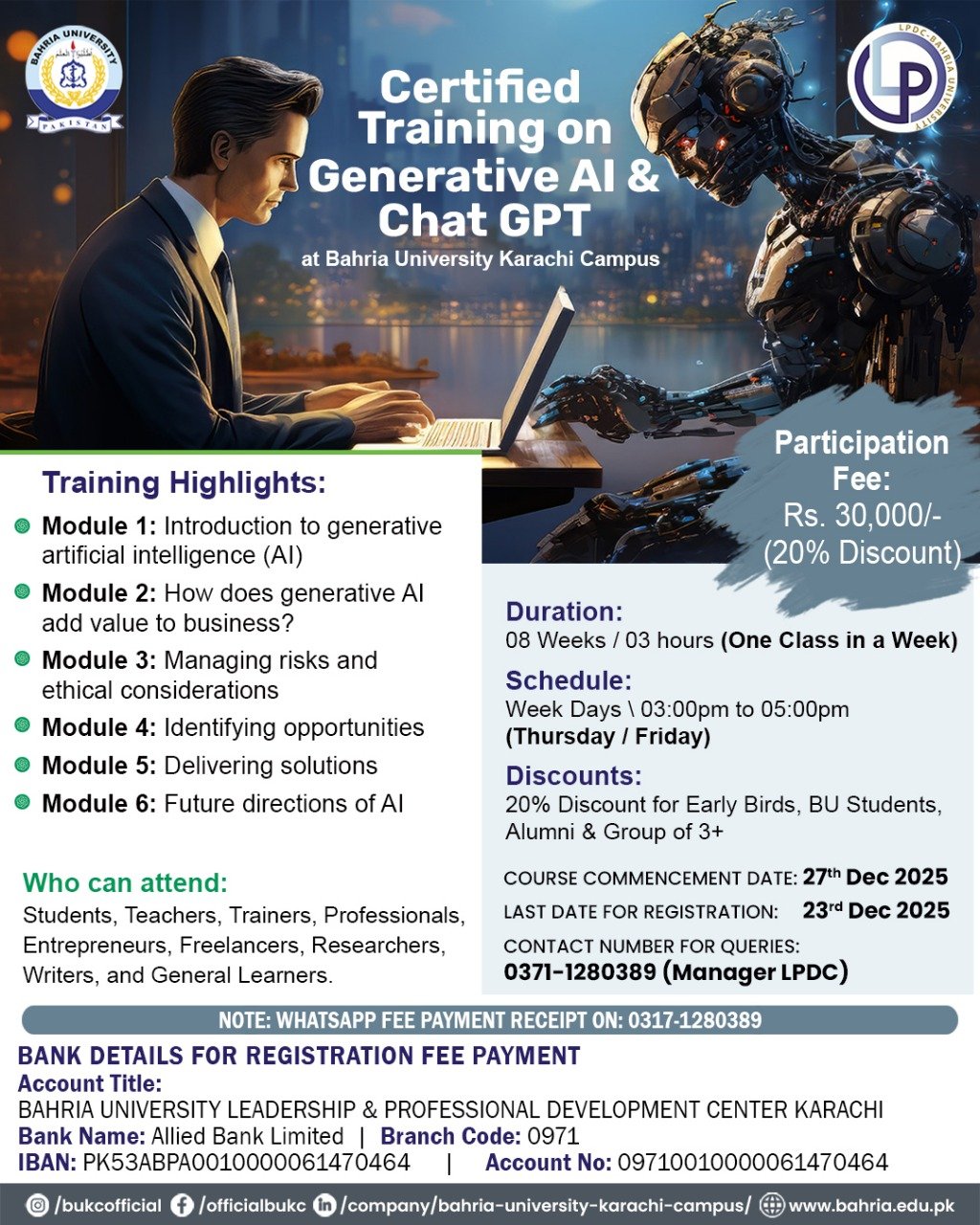 <p>Bahria University Leadership and Professional Development Center (LPDC) presents Certified ...